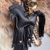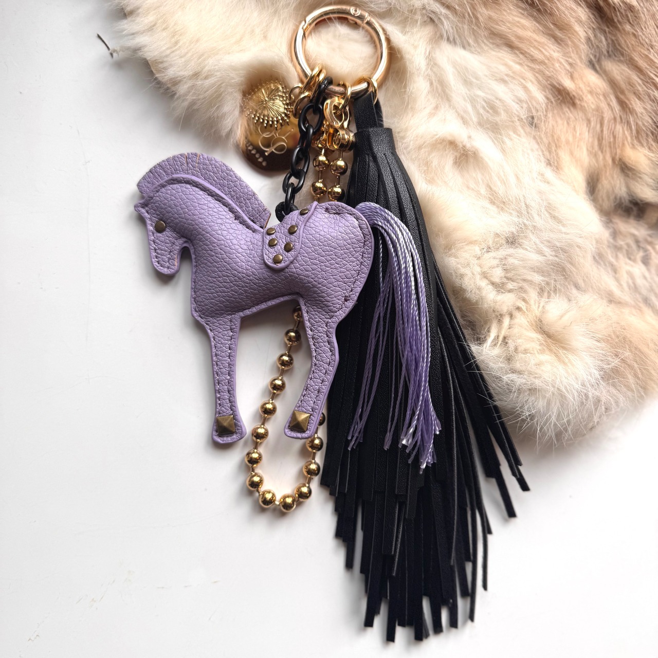 ご予約商品:1月中旬発送予定《バッグチャーム》Classy Horse Fringe Key Charm: fringe (ブラック・パープル)