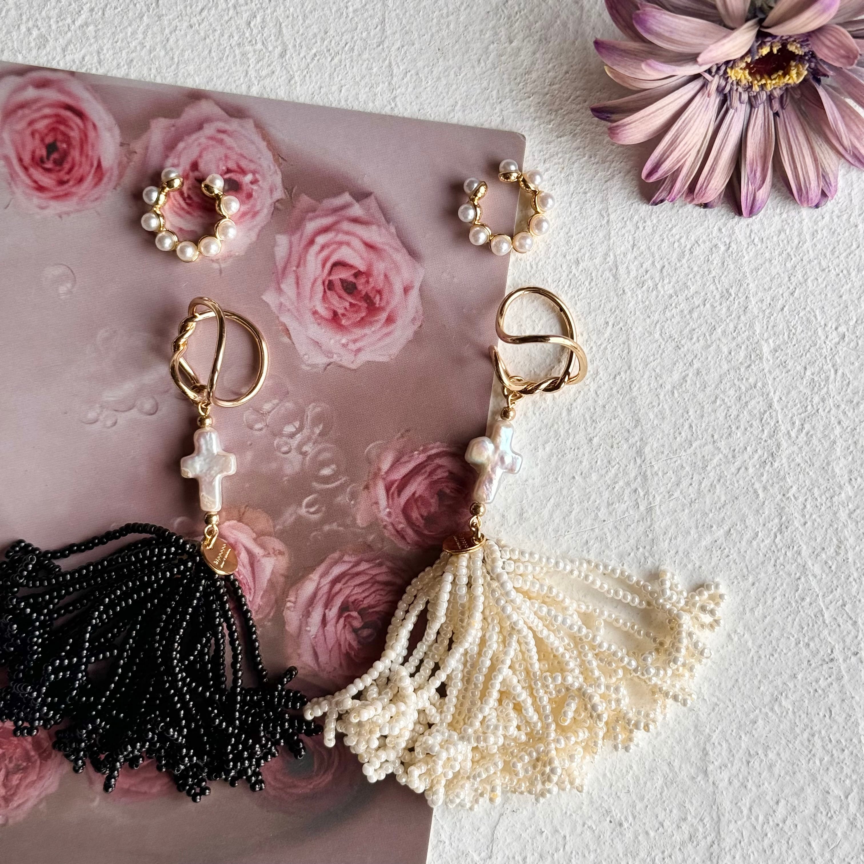 《イヤーカフ》beads tassel & tiny pearl 2item set